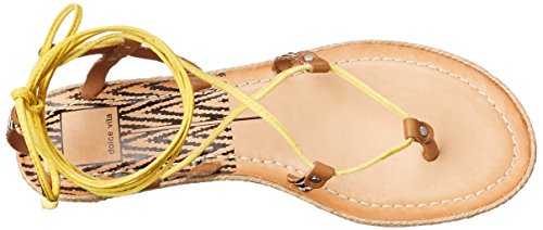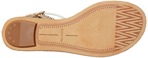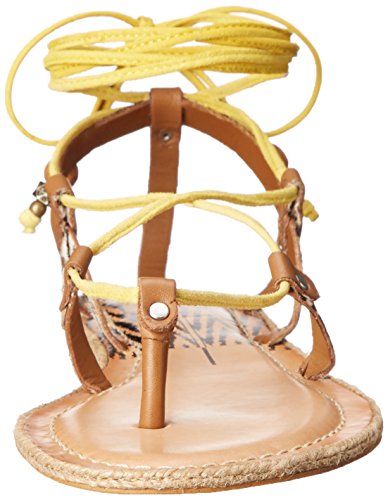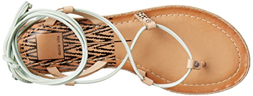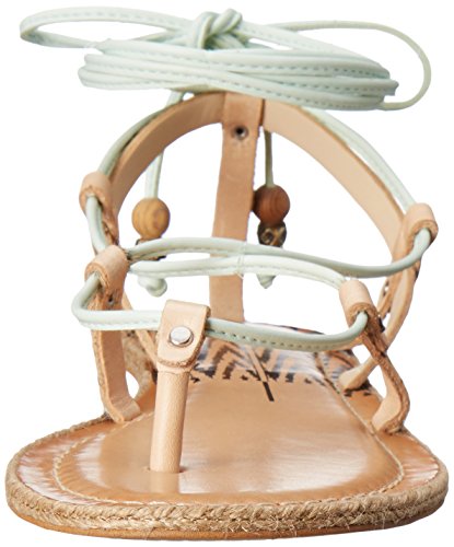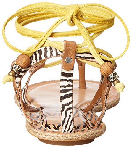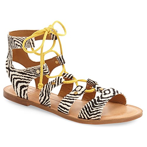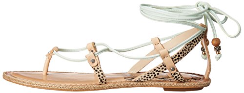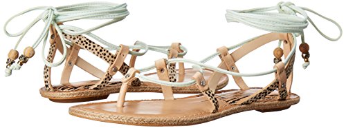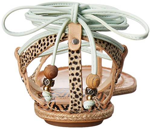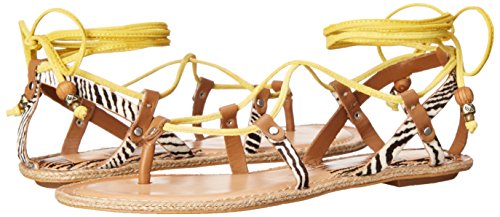 Gladiator-inspired flat sandal with strappy leather upper featuring lace-up closure with beaded ties