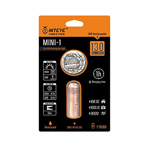 Bundle: JETBeam (NITEYE) MINI-1 Coppery Keychain Flashlight XP-G2 LED -130 Lumens with Skyben USB Light