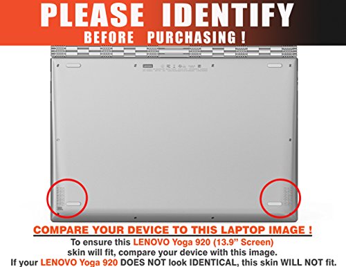 -. Feature : Made for the Lenovo Yoga 920 (13.9" Screen) laptop only. Device NOT included. / Please refer to the "Identify" image on this listing to ensure this skin will fit your device. / Durable, high quality adhesive vinyl stickers; this product is NOT A HARD COVER or made of rubber, silicone, gel, or plastic. / Image colors may vary depending on your monitor settings. / Easy to apply without any liquids / solution. To remove, simply peel it off slowly with your bare hands, leaving behind no sticky residue!