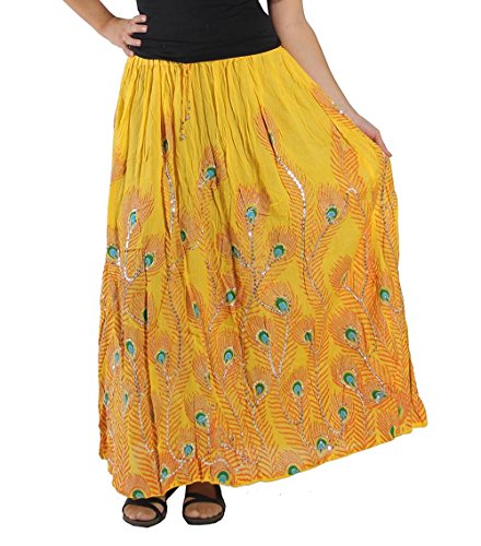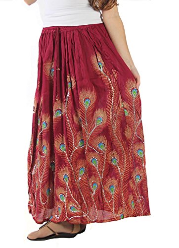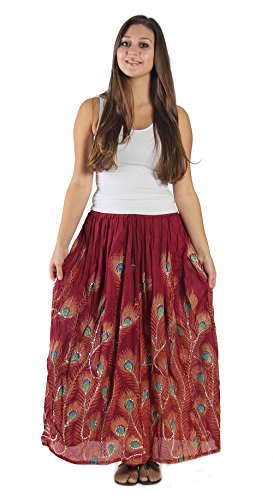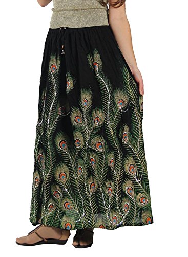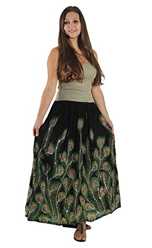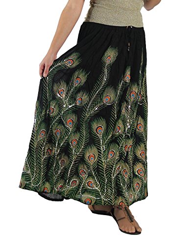-. Binding : Apparel -. Brand : KayJayStyles -. ClothingSize : One Size -. Department : womens -. Feature : Peacock feather print / Shiny Silver Sequences sewed with thread throughout entire skirt / Elastic Waist 24" to 38" max stretch. Length is approx 36" long / Hand Wash Separately in Cold Water. Hang Dry. Material: 100% Cotton / Seller "DharmaObjects" is are the ONLY AUTHORIZED SELLER of High Quality "KayJayStyles®" Clothing and Acessories on AMAZON -. ProductGroup : Apparel -. ProductTypeName : SKIRT -. Size : One Size -. Title : KayJayStyles Women's Long Peacock Hippie Bohemian Full Length Skirt