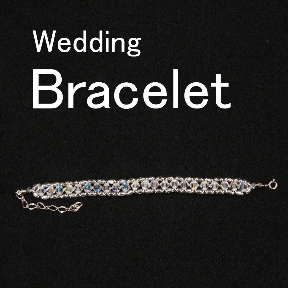 スワロフスキーの上品な輝きが美しく、清楚でスタイリッシュな印象のブレスレットです。 ビーズを配して繊細さもプラス。