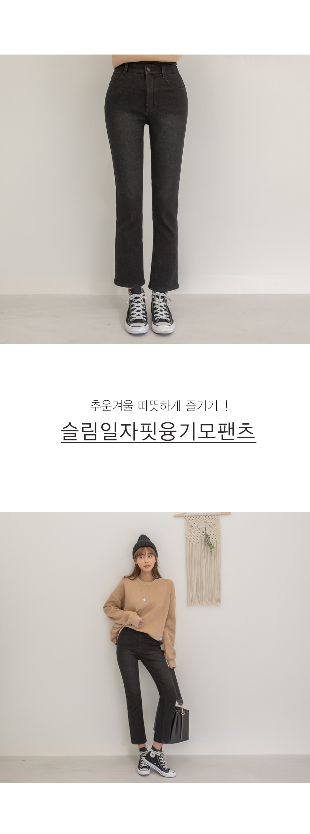 MD COMMENT 슬림 일자핏으로 레그라인을 돋보이게 해줄 융팬츠에요~ 일자로 떨어지는 핏감으로 부담없이 즐기실 수 있으며 코튼원단으로 모던하면서 따듯하게 착용하실 수 있습니다:)