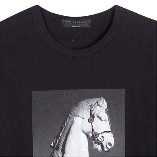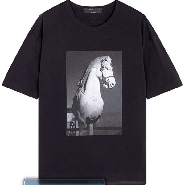 코모도스퀘어 17 S/S 블랙 말 자수프린트 티셔츠 / 9317216016 말 프린트에 자수포인트와 등판 아랫단 배색처리로 포인트를 준 티셔츠입니다 재킷이나 점퍼 이너로도 좋고 단품 착용하셔도 좋은 제품입니다