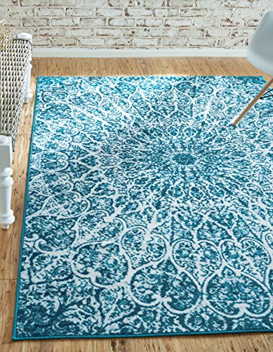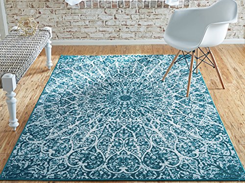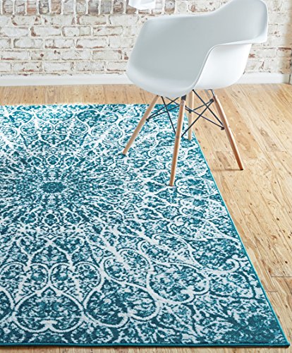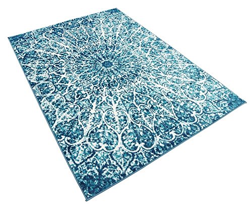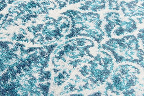 This Turkish Sofia rug is made of Polypropylene. This rug is easy-to-clean, stain resistant, and does not shed. Colors found in this rug include: Turquoise, Blue, Ivory. The primary color is Turquoise. This rug is 1/3" thick.