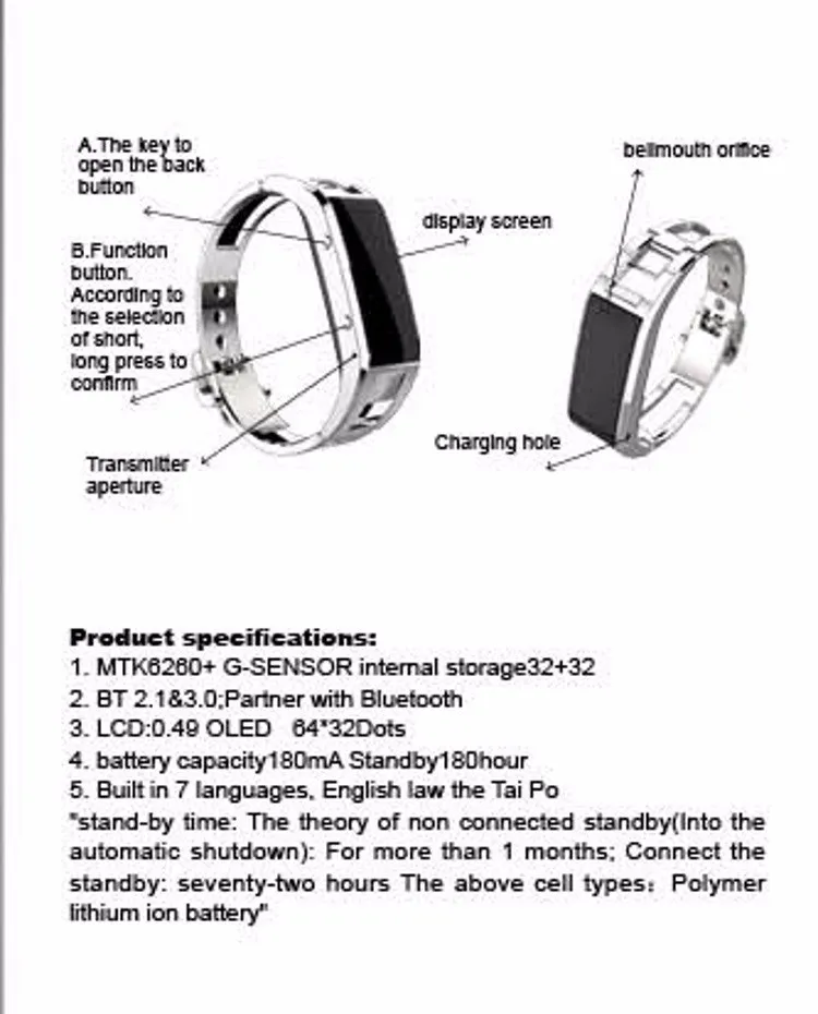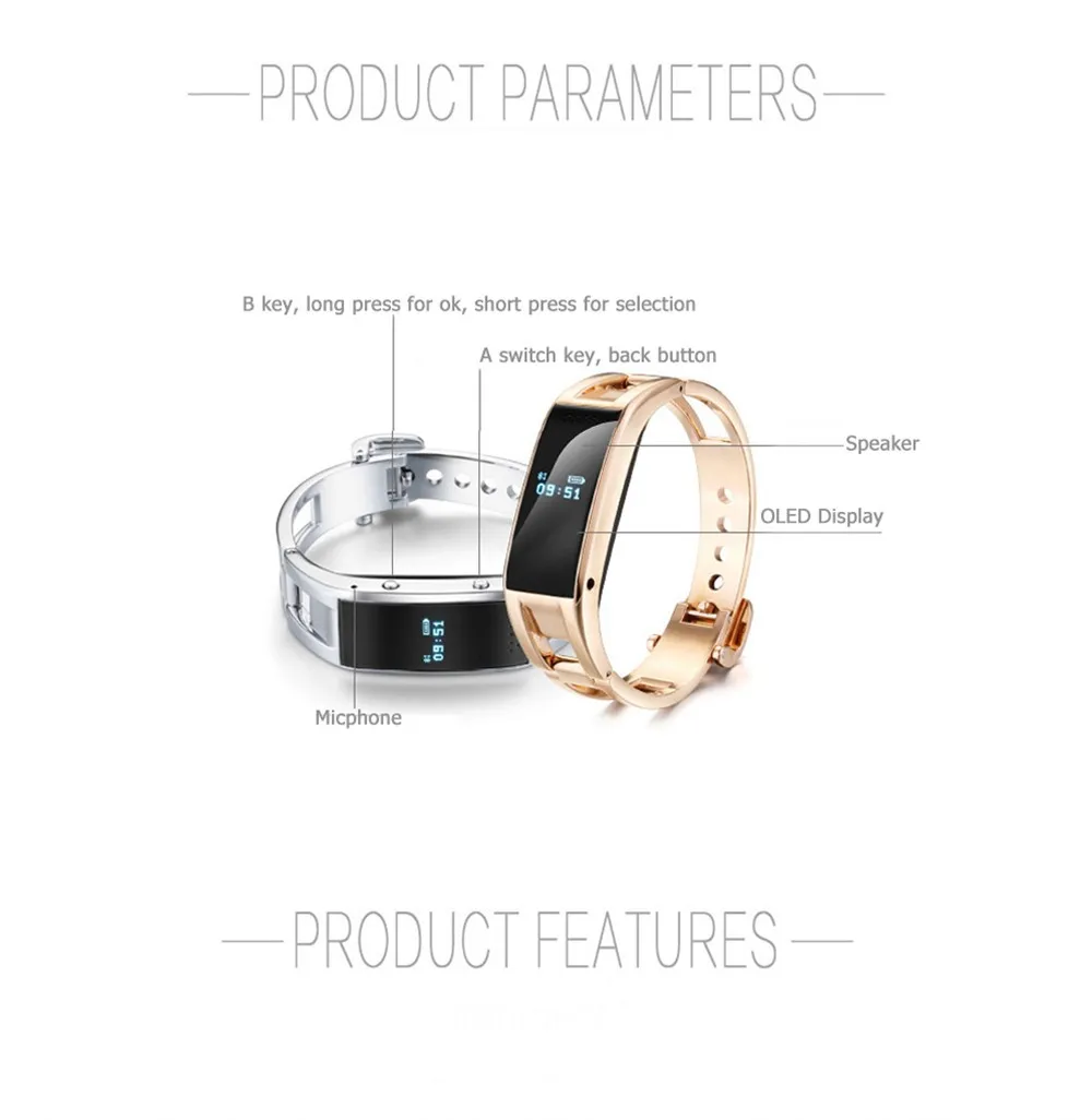 - Function:Passometer,Fitness Tracker,Sleep Tracker,Message Reminder,Call Reminder,Answer Call,Dial Call