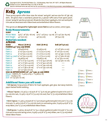 KWIK-SEW PATTERNS K0183 Aprons, All Sizes