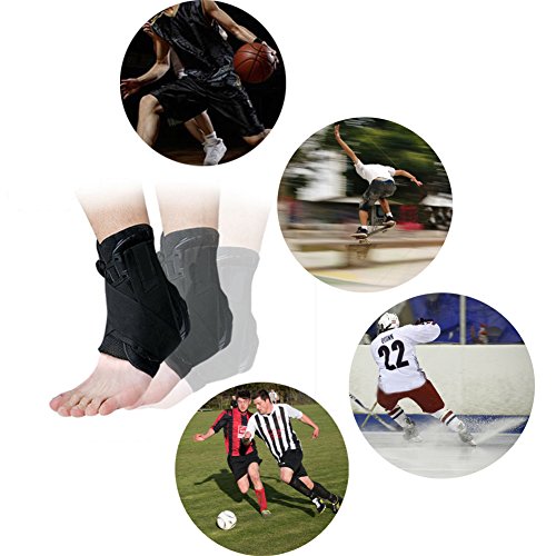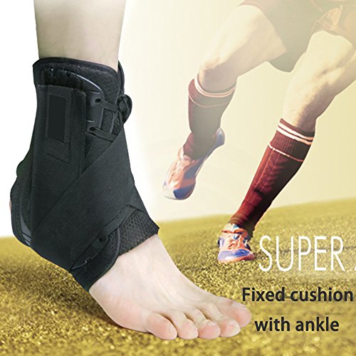 -. Feature : HIGH QUALITY CONSTRUCTION: Our ankle braces are constructed from high quality neoprene and nylon in order to give you a breathable brace and great mobility. All seams are double stitched for durability and most innovative technology. / INNOVATIVE DESIGN: The brace design simulates athletic tape that forms a figure 8 to protect and support your ankle. It can be use in either foot and comfortably fits into an athletic or normal shoe. Using the lace-up front and angular straps, you can adjust the tightness of the ankle brace depending on your needs. / REDUCE ANKLE PAIN: Our ankle stabilizer provides superior ankle support against sprains, strains and arthritic pain. It is ideal for the healing and prevention of sporting injuries as well as unexpected acute injuries. The angular reinforcement straps and the lace-up front wrap around your ankle to stabilize tendons and joints. / GREAT FOR SPORTS: Our ankle brace will help you to recover from injuries and prevent them. You can use it in several sports like: running, wrestling, Soccer, Crossfit, Hiking, Volleyball, Basketball, etc. / SIZE GUIDE: Suitable for Left OR Right foot. MEDIUM (MEN 7.5 to 8 and WOMEN 8 to 8.5), LARGE (MEN 8.5 to 11 and WOMEN 9 to 12)
