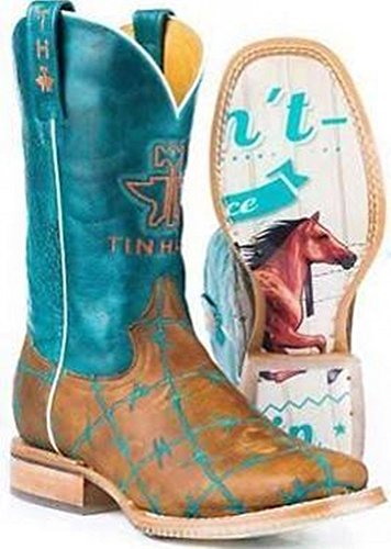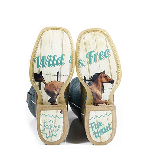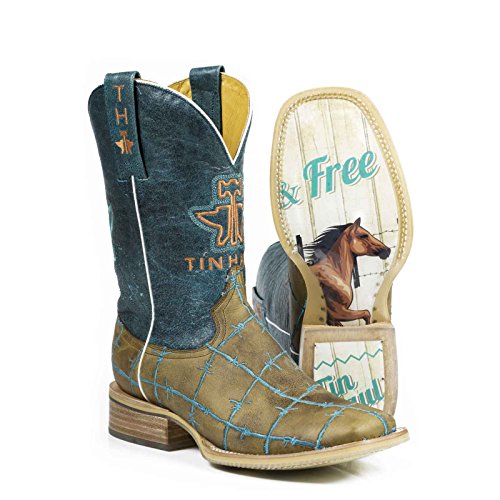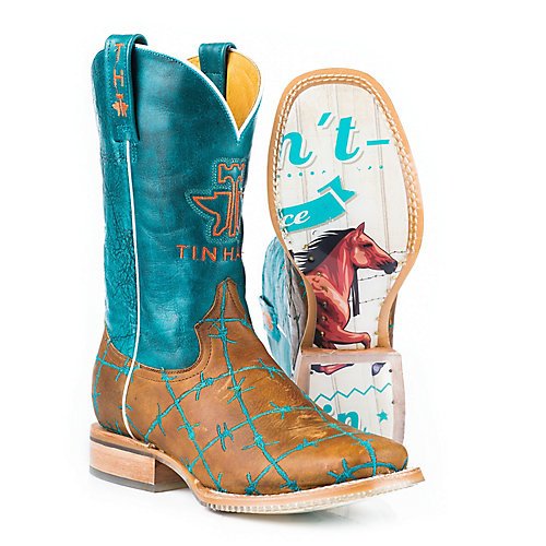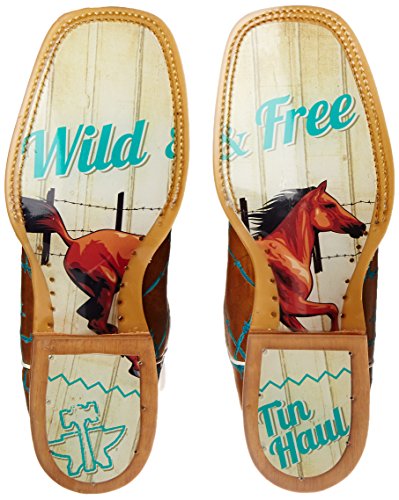 Studio : Tin Haul Shoes Publisher : Tin Haul Shoes Binding : Apparel Product Description These bold women's cowboy boots by Tin Haul are made for the woman who wants to make a statement with her footwear. The western boots are made of genuine leather with an obvious outsole featuring a printed design and the Tin Haul logo. Double welt construction along with a leather outsole and roper heel make these women's western boots rugged enough for work while the fun upper makes them perfect for play. 0