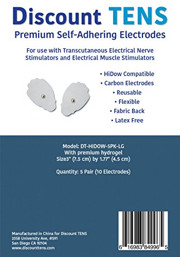 Our self-adhesive HiDow compatible electrode pads for TENS units are very durable and flexible. These reusable TENS pads have snap electrode connectors are easy to remove with no sticky residue left behind.