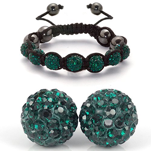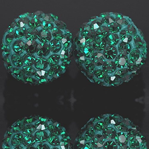 RUBYCA Pave Czech Crystal Disco Ball Clay Beads fit Shamballa Jewelry (20pcs, 12mm, Emerald Green)