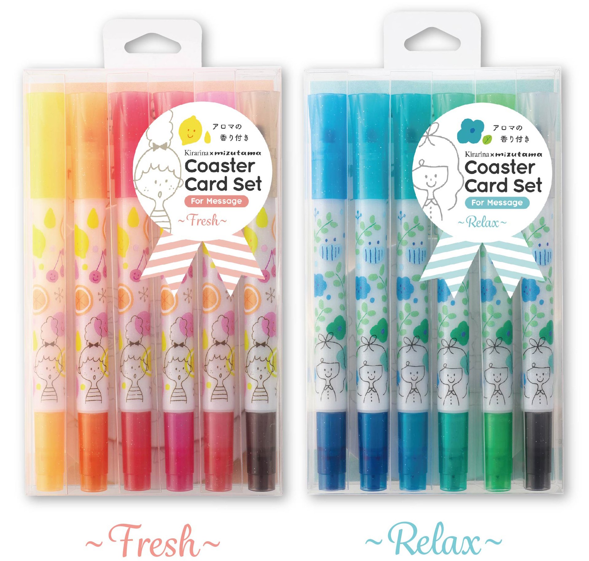 In addition to 'Coaster Set Fresh', 'Coaster Set Relax', Fresh, Relaxing We prepared a set 'Coaster Card for Messages' containing 1 set of 8 coats with illustrations in each set.