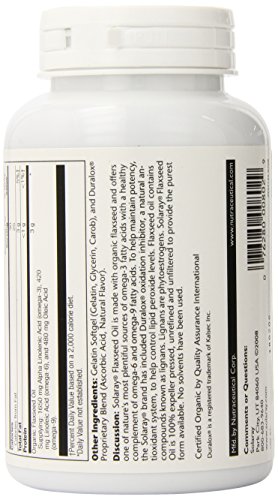 -. Feature : Contains organic compounds known as lignans, which exhibit estrogenic properties / 100% expeller pressed, unrefined and unfiltered / To help maintain potency, Solaray has included duralox oxidation inhibitor
