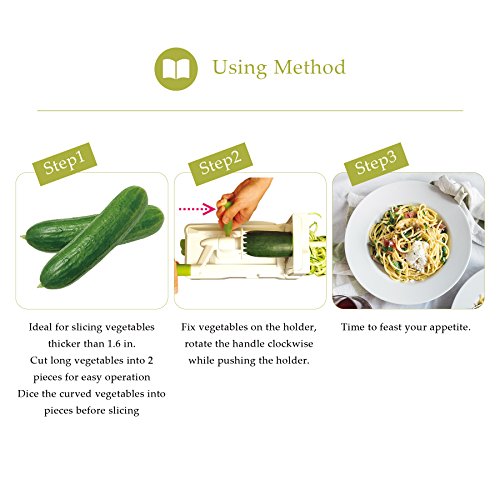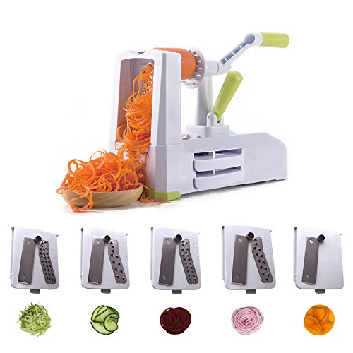 Studio : CO-Z Publisher : CO-Z Product Description Description: This compact and versatile spiralizer with 5 stainless-steel blades transforms vegetables and fruits into healthy and tasty noodle shapes. perfect for making quick low carb, healthy veggie noodles from firm fruits/veggies like zucchini, potato, cucumber, carrot, onion, cabbage, butternut squash, beets, apples and pears. With so many vegetables and fruits to choose from, the possibilities for delicious dishes are seemingly endless.