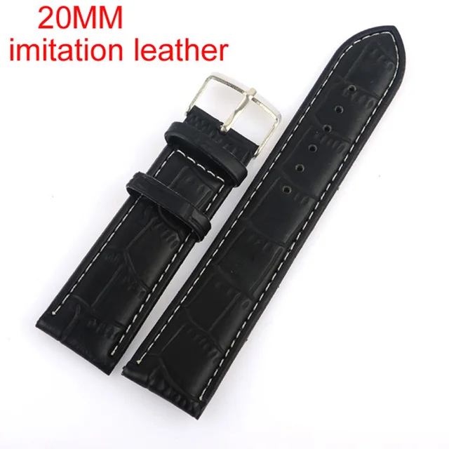 높은 품질 1 개 블랙 20 미리메터 모조 가죽 손목 스틸 버클. 방수 스트랩, 스포츠 시계 밴드