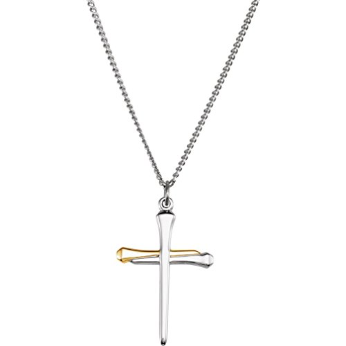 -. Title : Sterling Silver and Yellow Gold Plate Nail Cross Pendant Necklace, 24" Chain