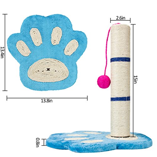 Studio : MEWTOGO Publisher : MEWTOGO Binding : Misc. Product Description Its size: L:14.1*W:14.1*H:16.3 inches Item weight: MEWTOGO scratching post provides cats with a good place for exercise and scratching. MEWTOGO scratching post is consisted of a durable footprint pad and a scratch tree .There's also a small punch ball for additional fun. They can punch the ball when they finished scraching. MEWTOGO scratching post provide a practical way to divert attention from valuable household furniture while your cat enjoy their good time. 0