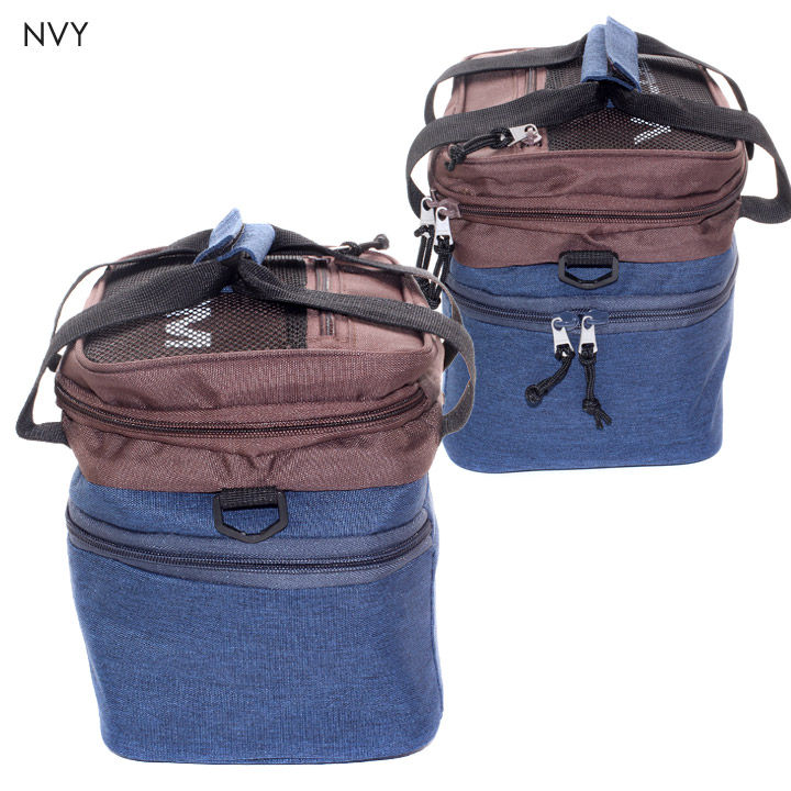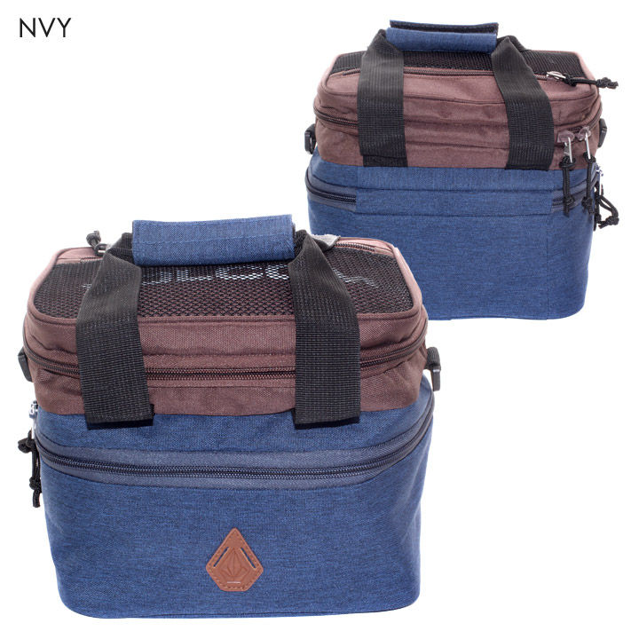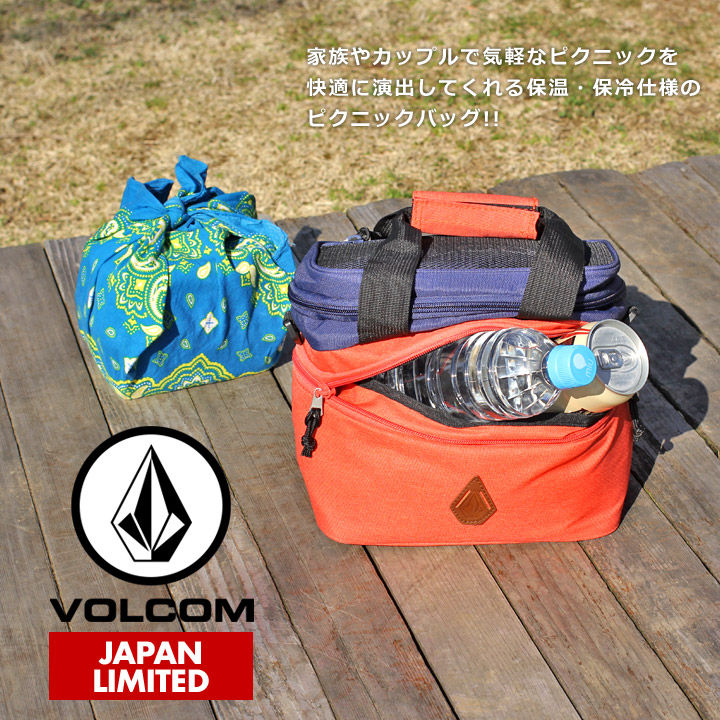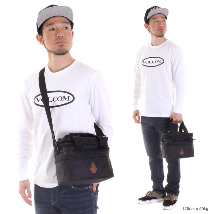 保温保冷が可能な素材を配備したシーズンを問わずレジャーシーンで活躍するピクニックバッグです。ショルダーと手持ち2WAYで使用ができ、持ち運びにも便利で上部のサブポケットにはお菓子など、下部のメインポケットには350ml缶が6本収まりコンパクトながら収納性に富んだ仕上がりになっています。また、メッシュポケット内にさりげなくVOLCOMロゴを配し、本体正面にはワンポイントととしてフェイクレザーのSTONE 型豚鼻パッチを落とし込みシンプルなボディーに栄えたデザイン面もオススメポイントです。