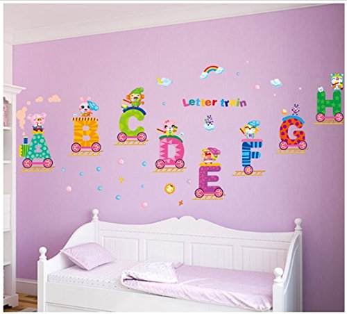 Boodecal English Alphabet Vinyl Lettering Train Bubbles Forest Animal Safari Wall Stickers Kids Room Bedroom Wall Decals Toddlers Birthday Gifts 47*17 Inches