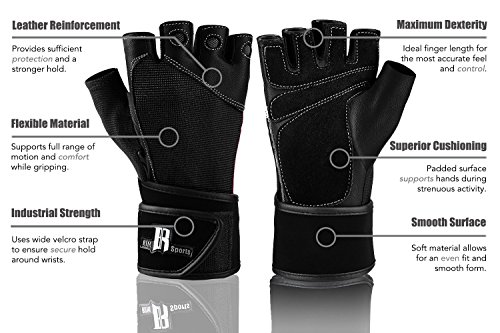 Comfort : While the majority of the available workout gloves use the traditional wrist wrap design, which can be hassle to fold, our uniquely designed strap has velcro in two locations, providing added flexibility and support.