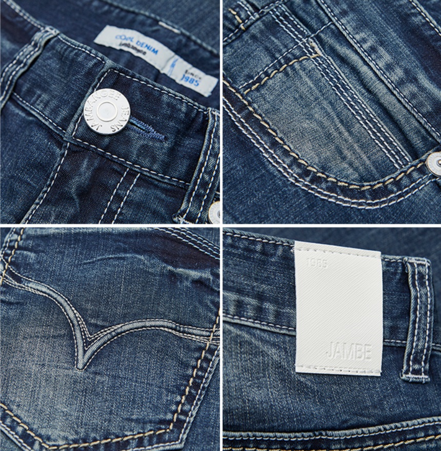 흡습성이 뛰어나 땀을 빨리 배출시켜 시원함을 느낄 수 있는 쿨맥스 소재로 로프사와 스티치 변형으로 포인트를 준 DB톤 캣 올브러쉬 워싱에 남성용 타이트 IG핏 데님스타일입니다.