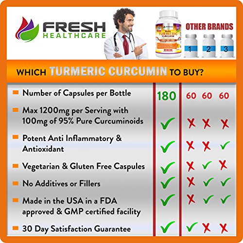 -. Title : TURMERIC Curcumin BioPerine with 95% Curcuminoids ✮ Extremely Potent Anti Inflammatory & Anti Oxidant Benefits for Pain Relief & Health ✮ Vegetarian Turmeric Powder Capsules by Fresh Healthcare