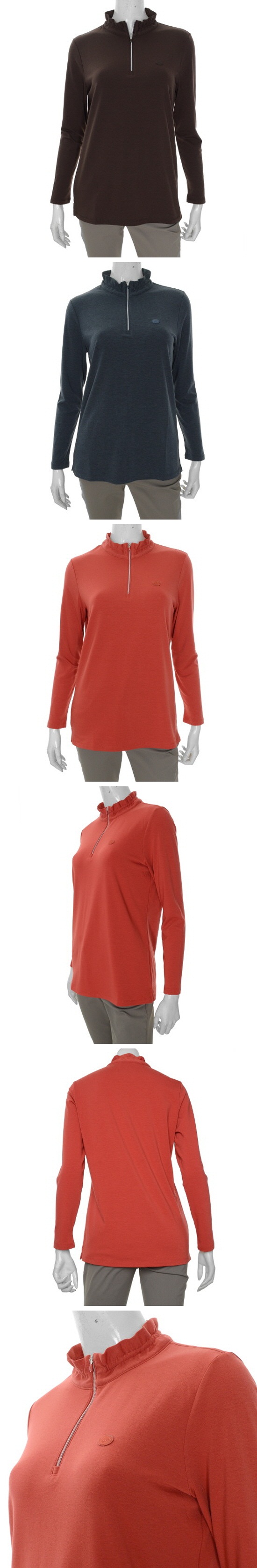 -기본 하이넥 변형으로 넥에 주름 셔링을 넣어 여성스러운 포인트를 주고 조직감 있는 원단으로 조금 더 고급스러운 이너로 코디하기 유용한 아이템.
