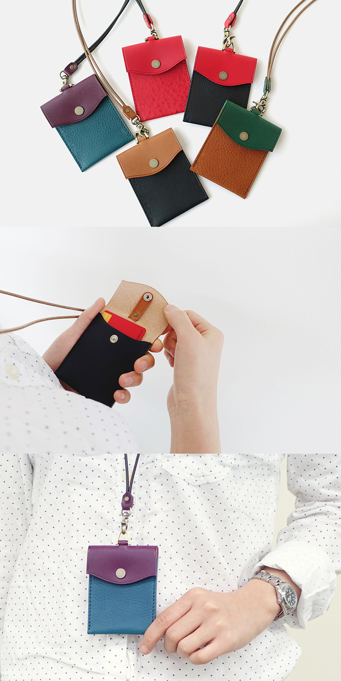 2~4장 정도의 신용카드, 신분증을 수납하는 목걸이형 카드케이스입니다.