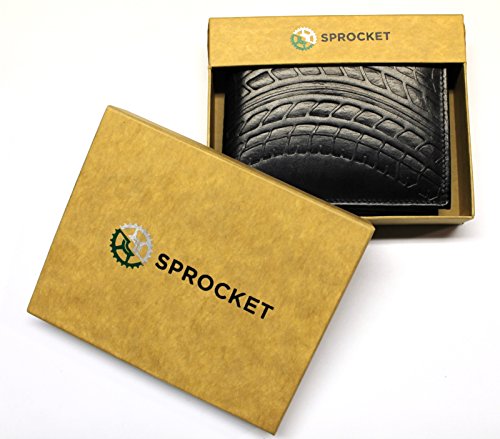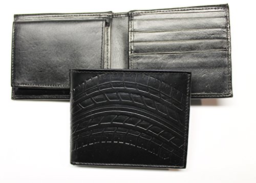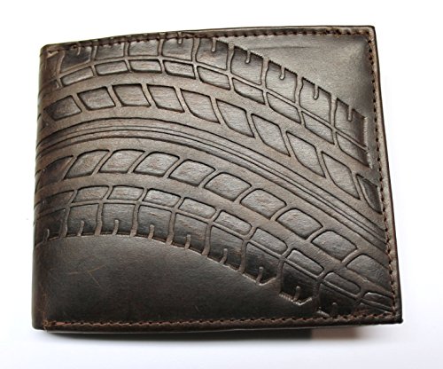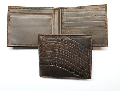 Binding : Apparel Product Description A high quality, genuine leather bifold wallet with a soft, natural texture that will look and feel softer and more comfortable the more you use it. Both front and back of the wallet include a unique embossed Tire Track graphic design for added style - certain to be a topic for conversation! Features 5 credit card slots and 2 divided currency pockets to store your valuables, plus a removable leather ID holder with 2 clear card slots, and a removable vinyl insert for additional cards and photos. Equipped with advanced RFID Blocking Secure Technology for added security against unauthorized access to your credit/debit cards with RFID chips. Imported. Package includes: 1 x Embossed Genuine Leather Wallet measuring 3 1/2 inches x 4 3/8 inches 1 x Gift Box with Logo 0