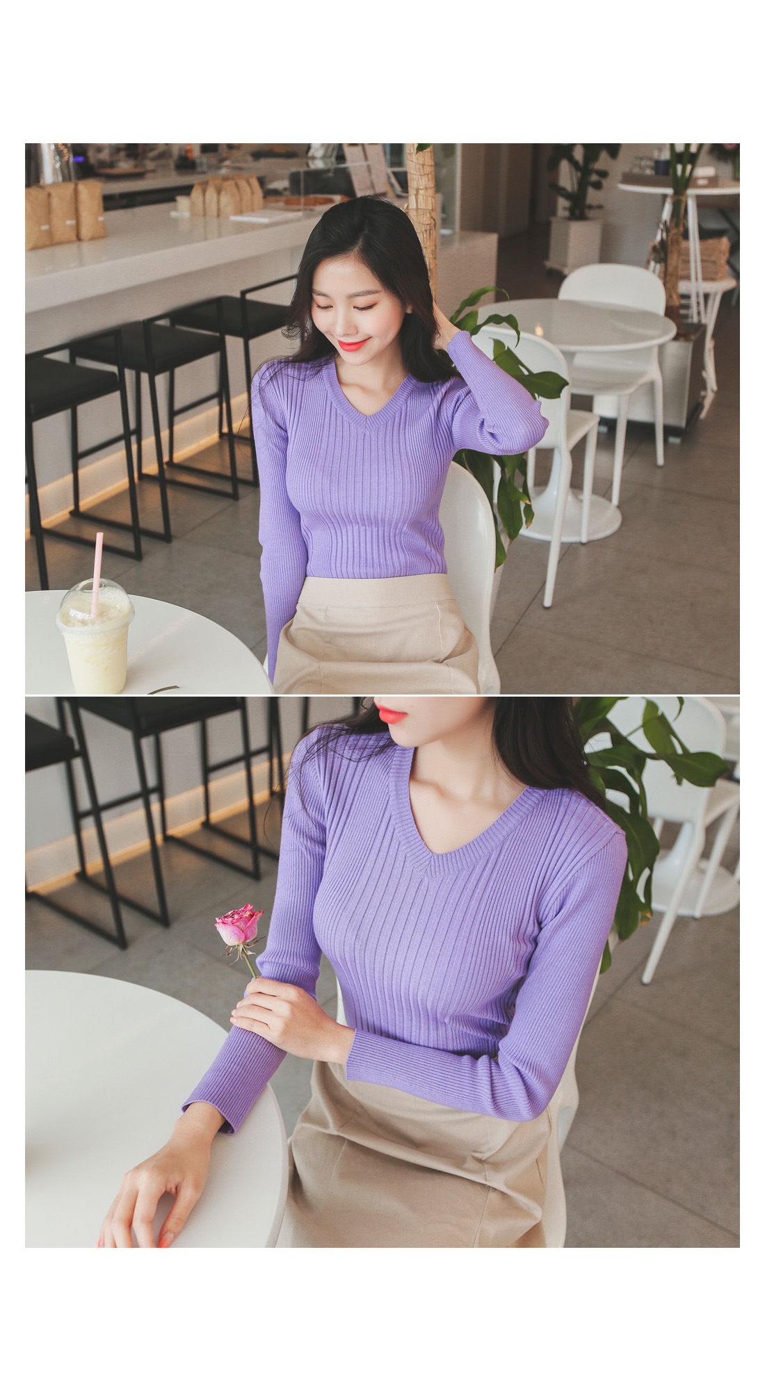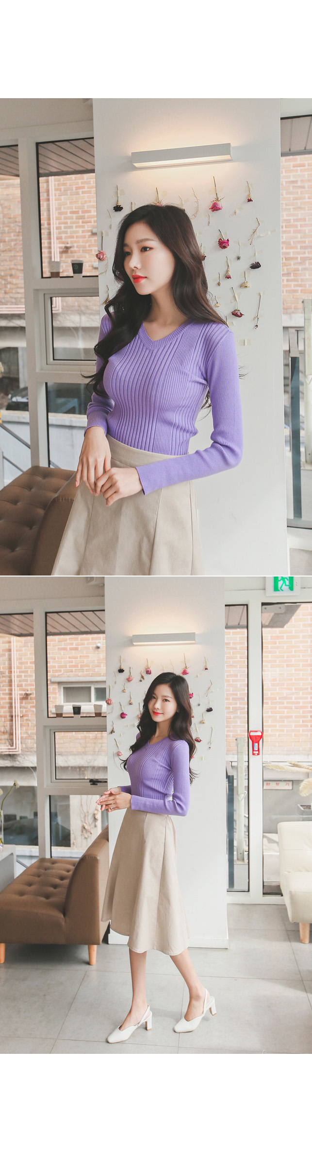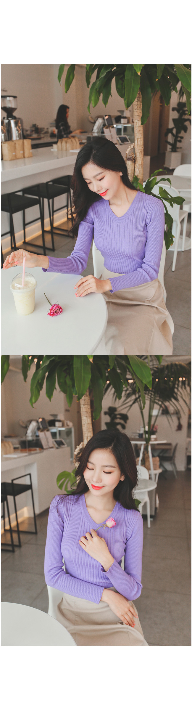 v네크라인으로 가녀린 목선과 숄더라인이 돋보이구요