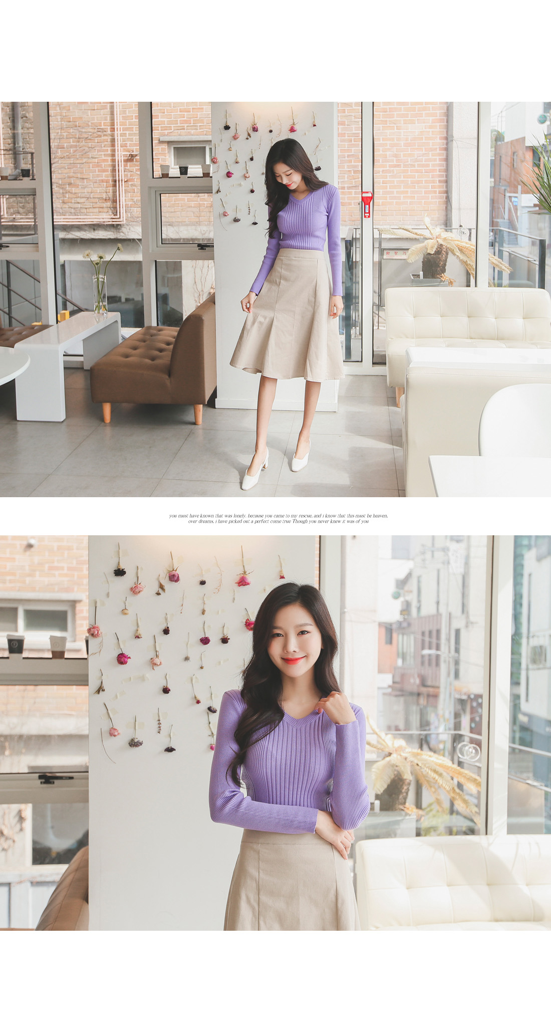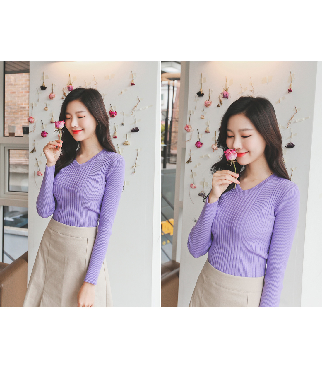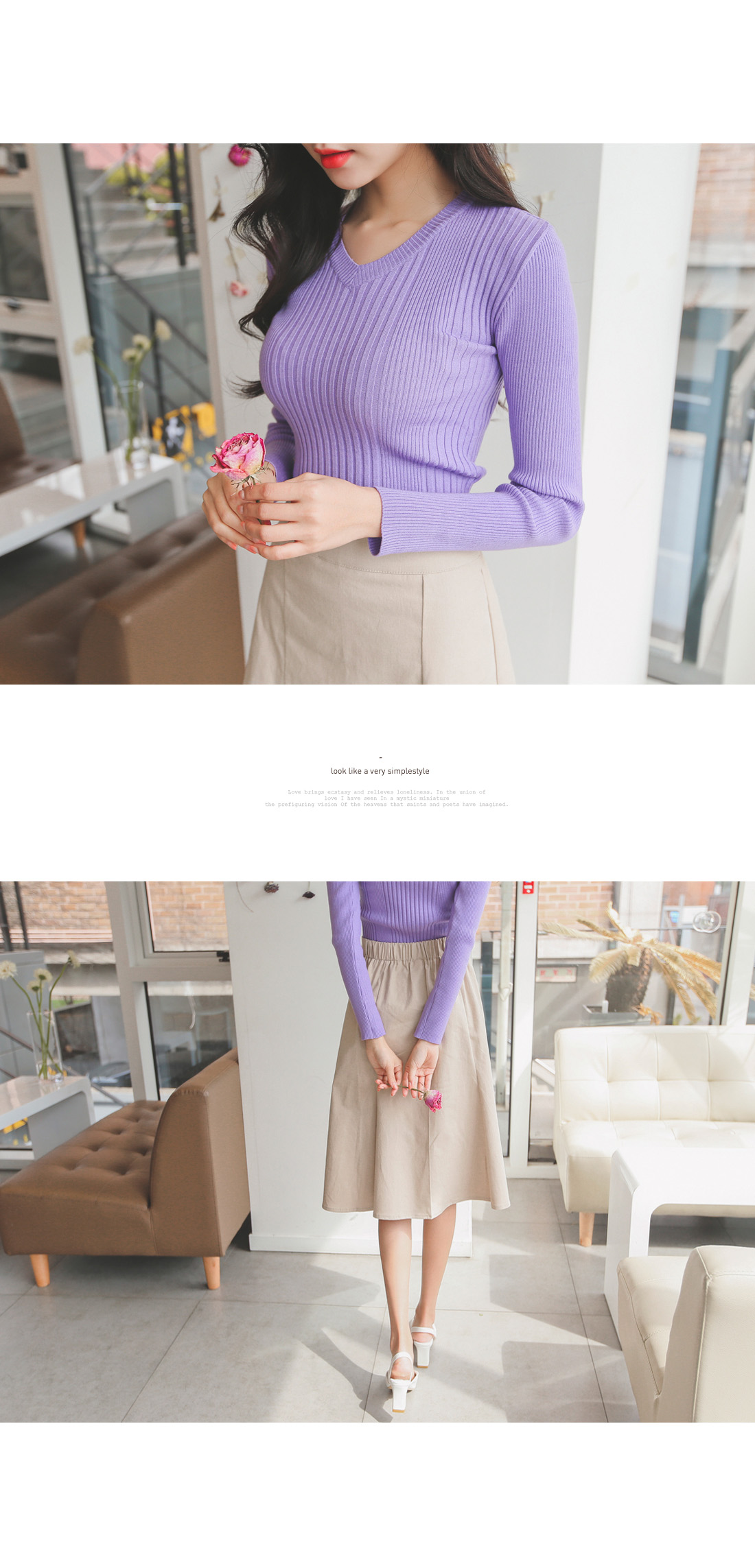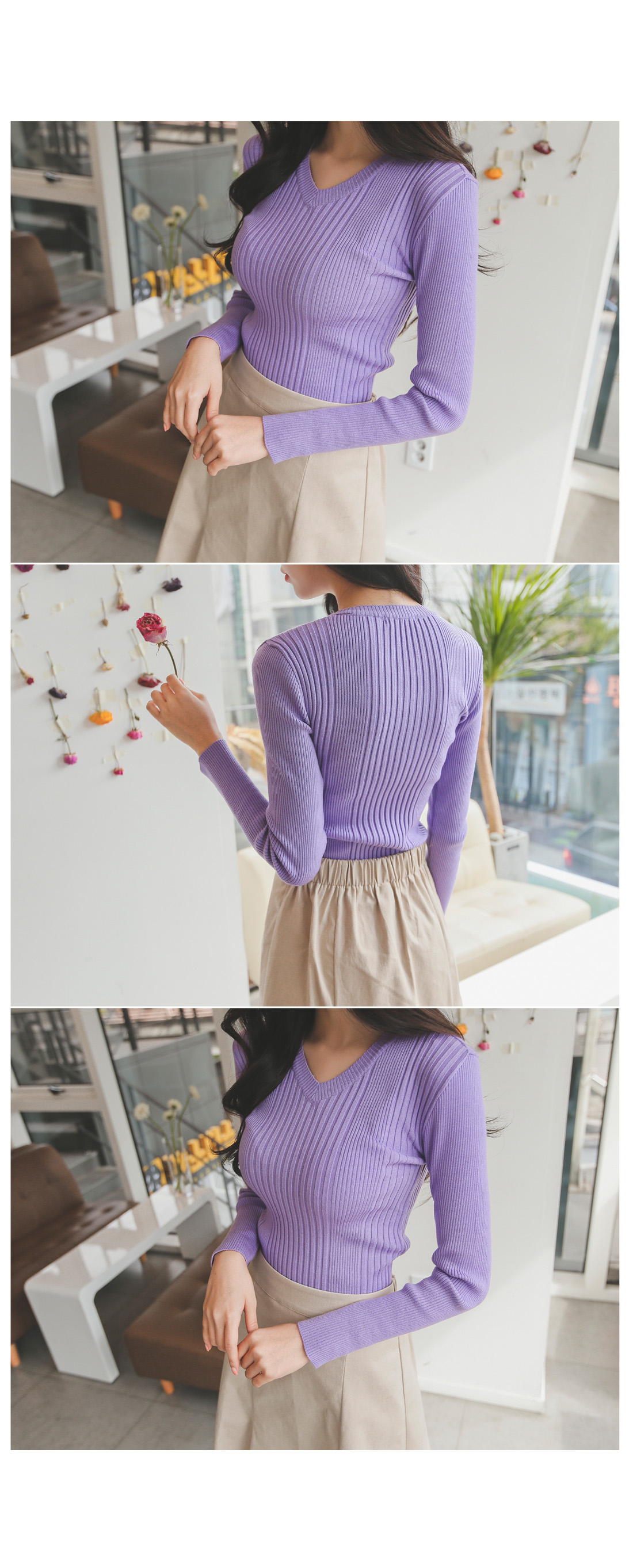 v네크라인으로 가녀린 목선과 숄더라인이 돋보이구요