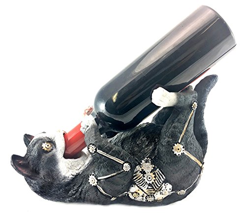 New Steampunk Cat Animal Wine Bottle Holder Sculpture for Unique Tabletop Wine Racks & Stands or Feline Statues and Animal Figurines As Holiday Gifts for Pet Owners