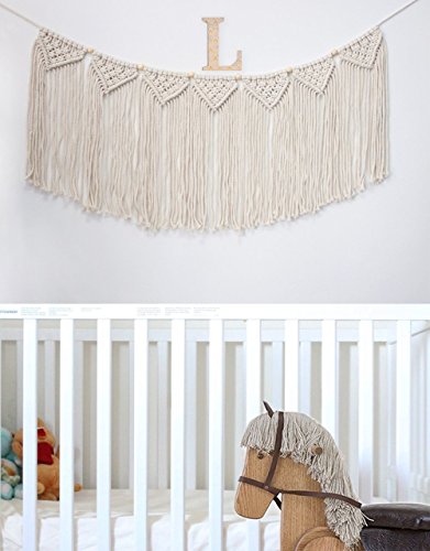 Comes ready to hang. Made with 6 mm (1/5") diameter undyed cotton cord and natural wooden beads.