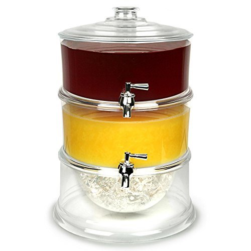 This 3-Tier Beverage Dispenser is ideal for parties, catering and buffets. Each tier holds 1 gallon of liquid for a combined total of 3 gallons. Features an easy to dispense tap and multi tiers to serve up to 3 different beverages. Cold beverage dispenser. Material: Acrylic. 3 individual dispensing taps for each layer Ice storage in base to keep drinks cold. Hand wash only.