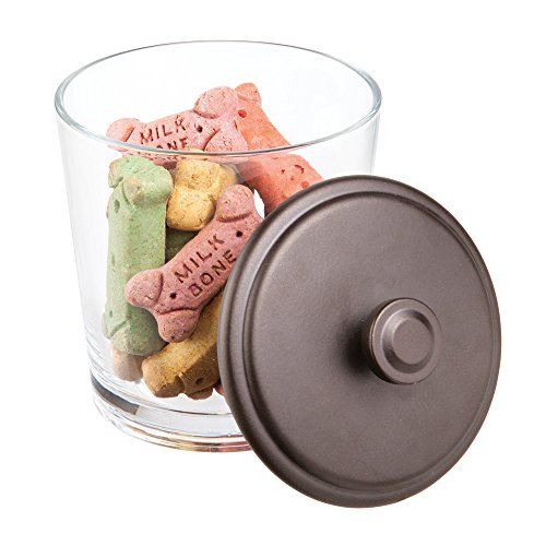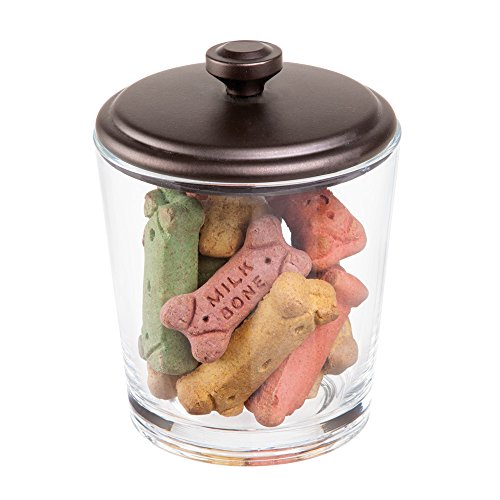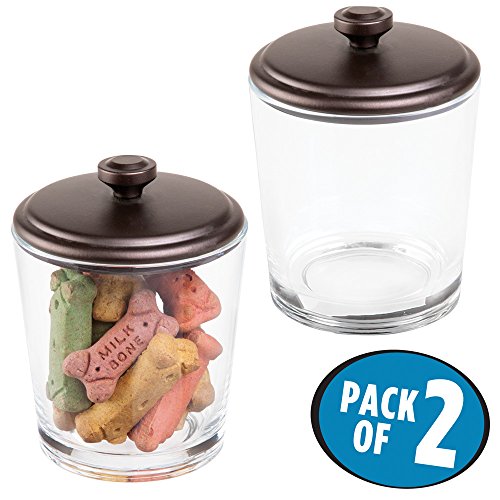 mDesign Pet Storage Organizer Canisters for Food, Treats, Accessories - Pack of 2, Clear/Bronze
