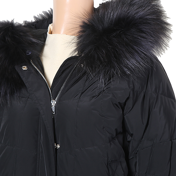 라쿤털 탈착 오리털 롱 패딩입니다