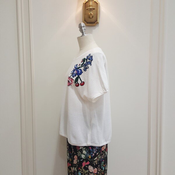 플로랄 가디건과 같은 자수를 사용한 플오버로 잔잔한 조직감이 고급스러우며 캐주얼한 실루엣으로 코디가 용이함