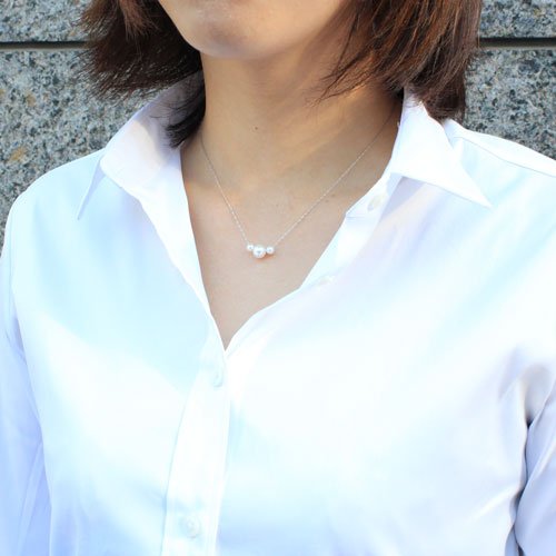 -. Feature : 材質:トップ/淡水真珠、チェーン/18金ホワイトゴールド / パールの大きさ:直径約7~7.5㎜珠1個、約4~4.5㎜珠2個 / チェーン:スクリューチェーン約40cm(引輪より約3cm部分にアジャスター有) / 留具は引輪式 / 総重量:約1.3g ※通常のネックレスケースに入れてお届けとなります。