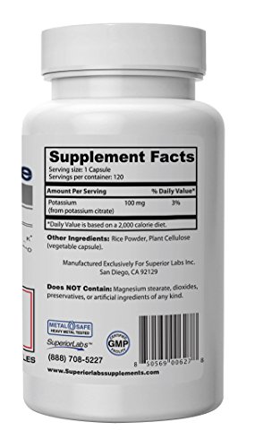 -. Title : #1 Quality Potassium Citrate by Superior Labs - 100mg, 120 Vegetable Caps - Made In USA, 100% Money Back Guarantee