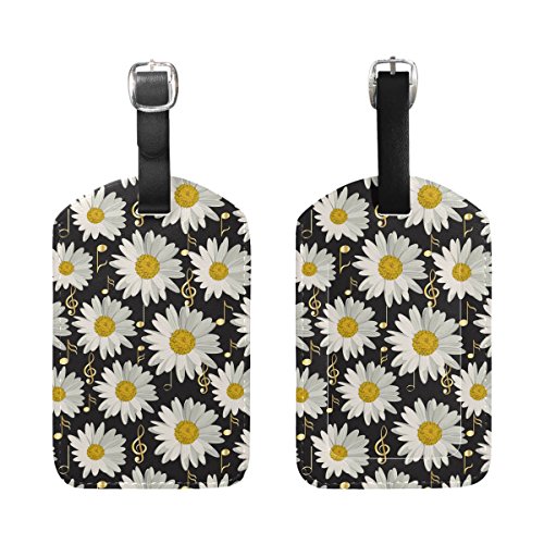 (ALAZA)/Accessories/Luggage, Bags Travel/DIRECT FROM USA/ALAZA Floral Daisy Music Notes Luggage Tag for Baggage Suitcase Bag Leather 1 Piece