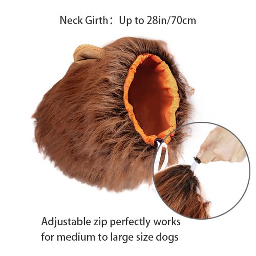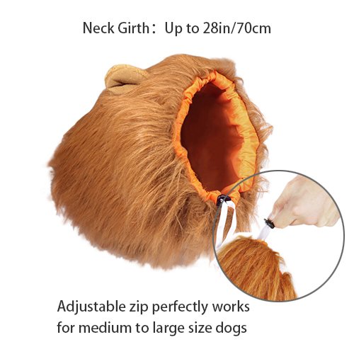 -. Feature : How to Use:Please shake the wig in the hair-reverse direction to let it fluffy, also could use comb, then tighten the top of the wig, finally the lion mane comes out. / Adjustable Size:Fits pet's neck girth from 23.6" to 31" (60cm to 80cm), perfect for large or medium dogs. / Durable:No dropping hair,Simply wash with warm water and mild soap then air dry. / Great gift idea:A perfect gift for Christmas, Halloween Easter Christmas Party Gift or any holiday occasion. / Warranty:180-days warranty and friendly customer service.