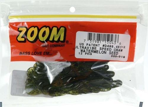 Ultraviolet speed craw Black/; the incredibly versatile ultra vibe speed craw from Zoom can be effectively fished alone on a Carolina rig or rigged as a trailer on your favorite flippin' jig. The speed craw's high-action tentacles tantalizingly flutter on the fall bringing the bigger bass out of the deepest cover for a look-see and strike-the. 12 pack. ; Soft plastics ; zoom; with its small profile and great leg action, the Zoom speed craw is great for flipping thick mats. Rig this speed craw on the back of a small casting jig and you have a trailer that will kick and put off vibration like no craw on the market. As with all Zoom Baits, the ultra vibe speed craw is available in a variety of colors to match with your local waters and features life-like, super soft, salt-impregnated plastic that bass will fight to hold on to. Black sapphire.Feature