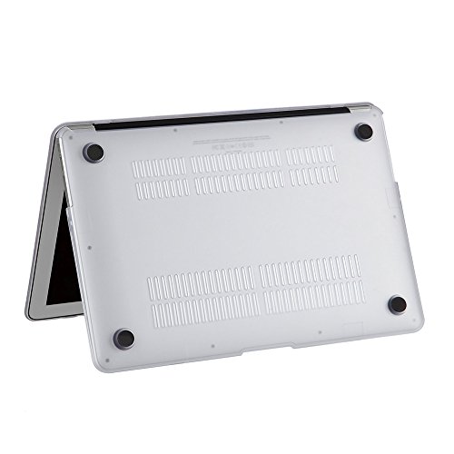 NOTE: It is a see through case, there is no Apple logo cut out on the case. Because the bottom of the Macbook air is at right angles, the shell is a wrap corner design. The bottom of the Macbook Pro have radian, so the case can not be designed like Macbook Air, otherwise it will affect the screen open. Products are Macbook compatible and not produce by Apple, Inc.