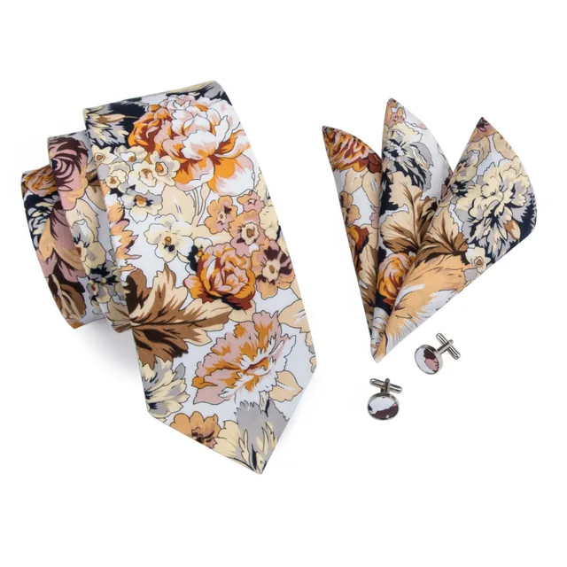 | [해외]SN-1377 새로운 도착 남성 넥타이 캐주얼 스타일의 목 넥타이 손수건 커프스 세트 브라운 Gravatas 비즈니스 웨딩 파티 |