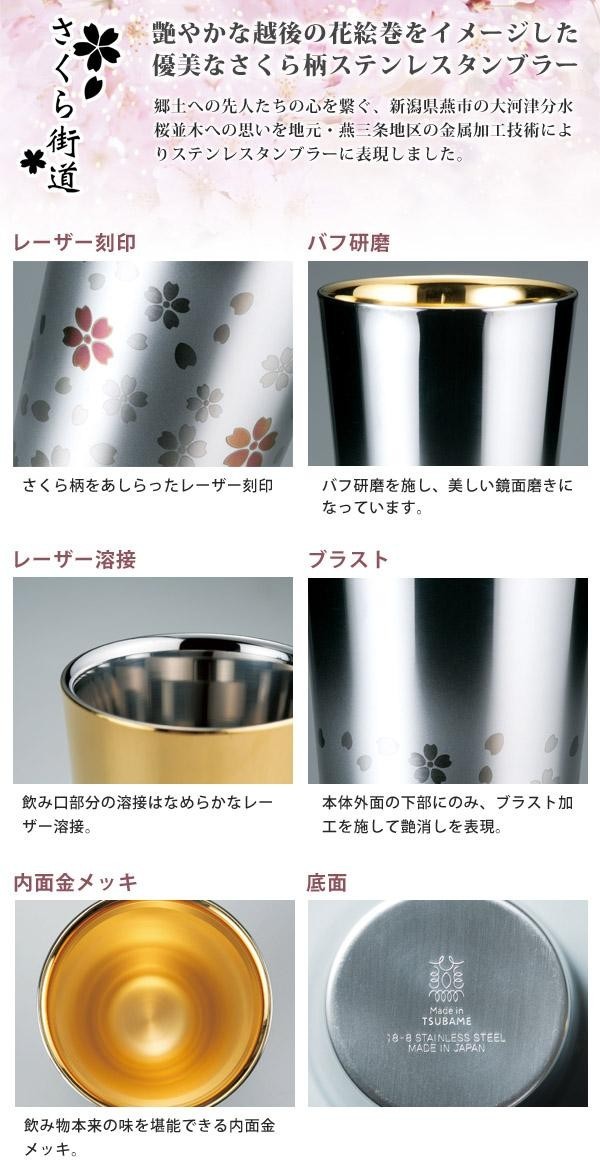 郷土への先人たちの心を繋ぐ、新潟県燕市の大河津分水桜並木への思いを、地元燕三条地区の金属加工技術によりステンレスタンブラーに表現しました。 |