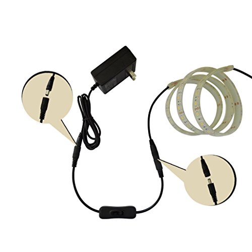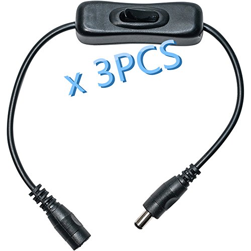 COLINKIND 3PCS DC Power Switch Extension Cable Male to Female 5.5mm x 2.1mm Barrel for 3528 5050 5630 5730 3014 LED Strip Light CCTV Camera and Other Low Voltage Applications