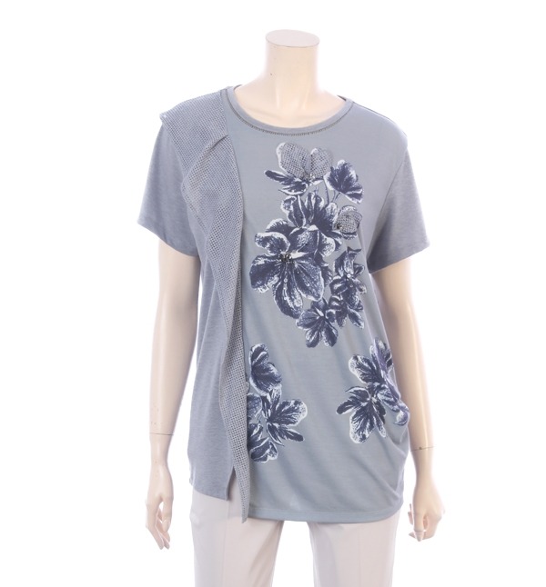 IZZAT BABA, 플라워 프린트와 플라운스 디테일로 세련스러운 스타일 감각을 연출하는 반팔 티셔츠입니다