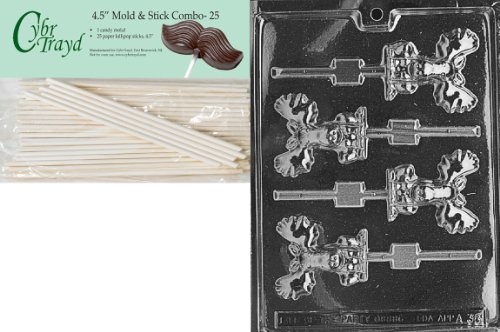 Cybrtrayd 45St25-A038 Moose Lolly Animal Chocolate Candy Mold with 25 4.5-Inch Lollipop Sticks