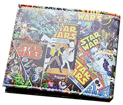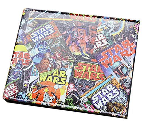 -. Binding : Apparel -. Brand : Star Wars -. ClothingSize : One Size -. Color : Black -. Department : mens -. EAN : 0715201919104 -. Feature : Comes with a complimentary gift box / Approximate Size: 4.75" x 3.5" / Gift Box Color May Vary from Picture / Wonderful Gift Idea / Any Fan will Love! -. ProductGroup : Apparel -. ProductTypeName : ACCESSORY -. Size : One Size -. Title : Star Wars Classic Retro Comic Book Covers Look of Leather Bi-Fold Wallet (with Gift Box) -. UPC : 715201919104