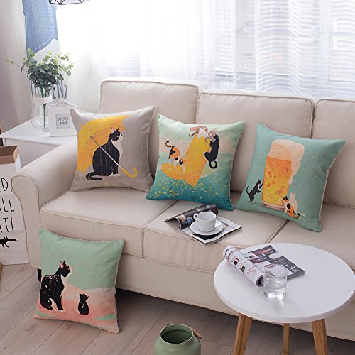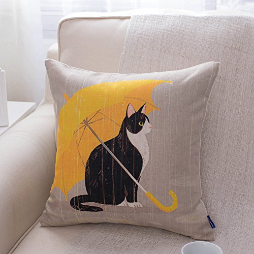 JES&MEDIS Cat Cotton Linen Decorative Cushion Cover Pillow Case,18x18inch