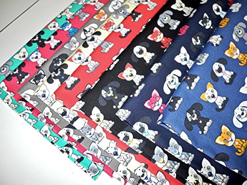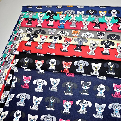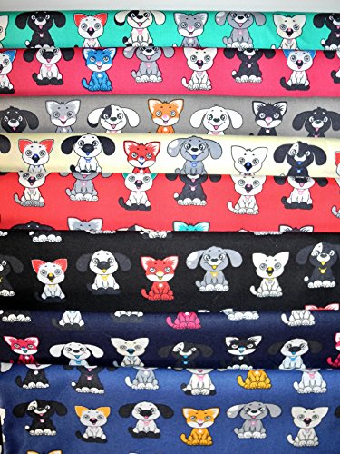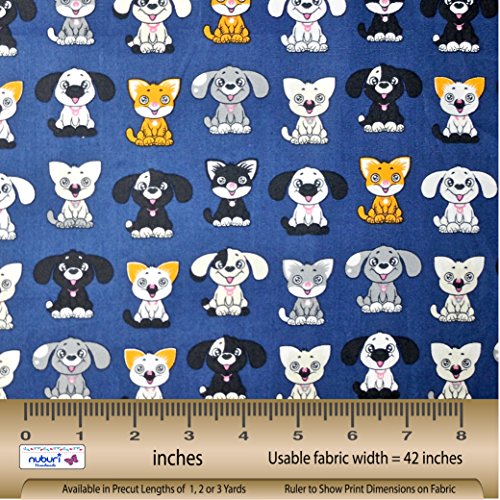 Cartoon Cats & Dogs - Fabric by the Yard - Selection of Color and Length - 100% Cotton (Blue, 1 Yard)
